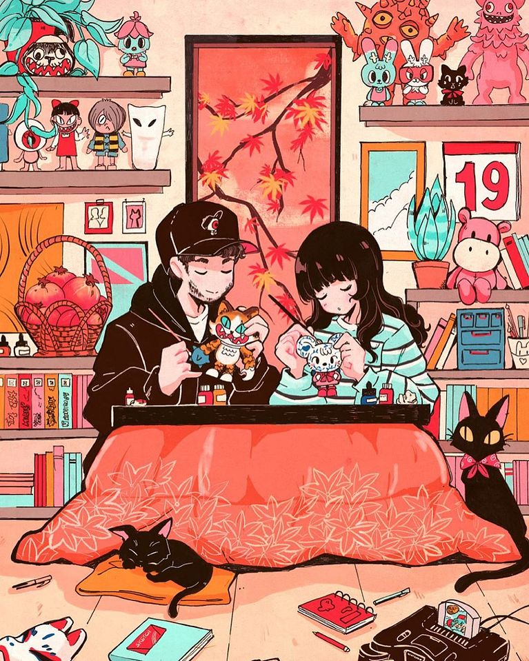 Las influencias están en todas partes, van desde distintas áreas del arte que me inspiran a crear, ilustradores a escultores a diseñadores de vestuario. Pero en la actualidad como referentes top estarían: en la ilustración, Riichi Ueshiba, mangaka creador de Discommunication y Kinu Nishimura, ilustradora para Capcom; en moda, Jun Takahashi, fundador de UNDERCOVER y Steven Smith, creador de las Reebok Instapump Fury y New Balance 997; en cuanto a música, Yasutaka Nakata, productor en proyectos como Capsule y Coltemonikha; en la industria de los videojuegos, Shigesato Itoi de la serie MOTHER y Keita Takahashi con Katamari; y en diseño de personaje, mencionaría a Kazuo Umezu, mangaka creador de Makoto-Chan.