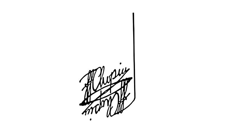 El compositor polaco del siglo XIX tenía una hermosa caligrafía, que como sucede con otros músicos, resulta muy interesante de ver en sus partituras. Chopin usó distintas firmas a lo largo de su vida. Esta versión, además de reflejar su nombre, asemeja la forma de una figura musical negra.