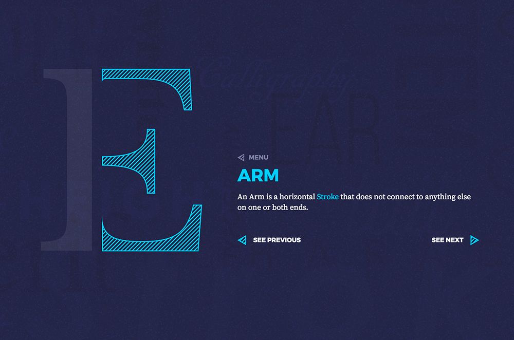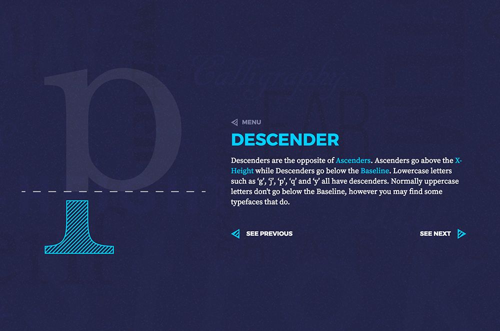 Una vez que tuve la idea clara, me di cuenta que Type Terms podría ayudar a enseñar a los nuevos estudiantes de diseño terminología tipográfica; el objetivo era crear algo que describa cada término visualmente de modo que incluso alguien sin conocimientos de tipografía pudiera entender al instante." Dan Heywood