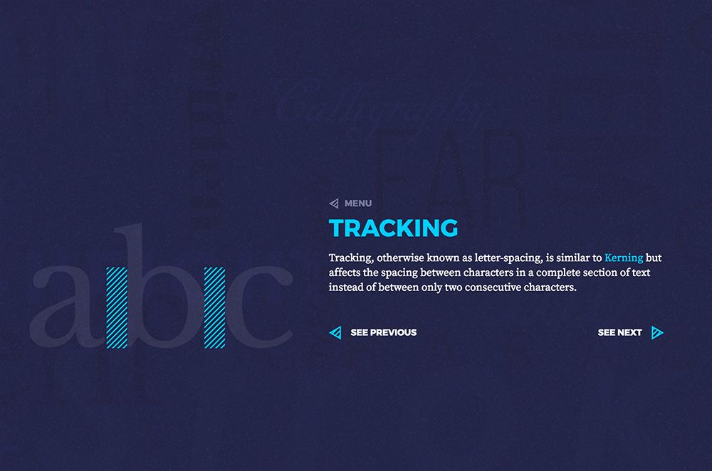"Antes de salir de la Universidad, di un repaso a mis conocimientos de tipografía y decidí crear algo que pudiera tener como referencia siempre que fuese sea necesario. Quería combinar diseño web y tipografía con el fin de crear una experiencia animada que me brindara la oportunidad de experimentar con archivos SVG y animaciones CSS.