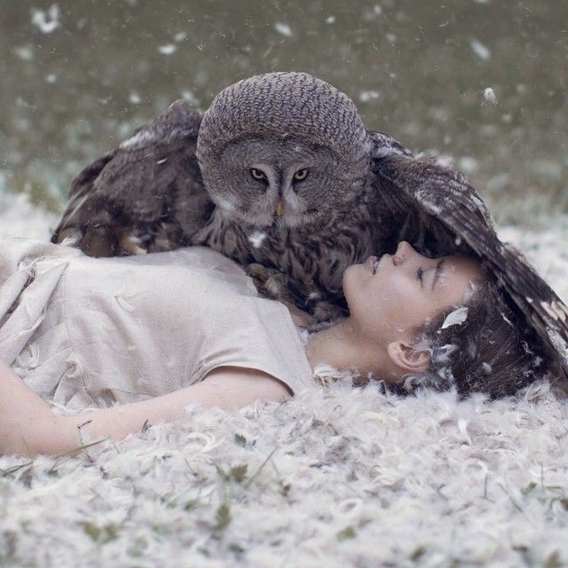 Esta fotógrafa rusa crea retratos que parecen salidos de algún cuento de hadas, pero no son fotomontajes. Se ayuda de entrenadores expertos para lograr que los animales posen junto a las personas. Su tema, la armonía entre especies, nos hace reflexionar sobre lo ajenos que somos ante los animales en la actualidad.