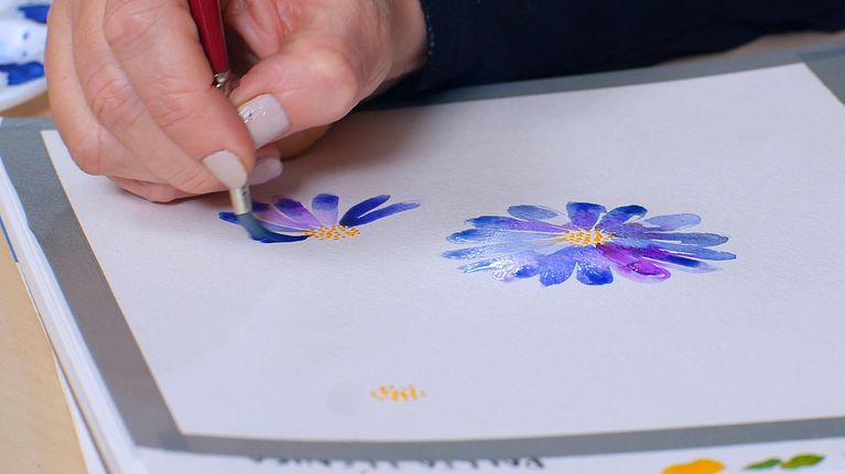 Otro aspecto a tener en cuenta es que la mano que lleva el pincel tiene que estar cómoda, así que para composiciones circulares como los pétalos de una flor, giraremos el lienzo cuando haga falta para seguir utilizando pinceladas óptimas.