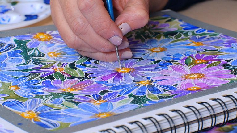 Una vez hemos completado esta primera capa y la hemos dejado secar, es el momento de completar la ilustración añadiendo detalles. Utilizaremos colores más oscuros en los pétalos poniendo más presión en el pincel y utilizando su punta, o añadiremos otros colores, como por ejemplo ocre para darle más profundidad al amarillo del polen de nuestras flores. Estos detalles van a ayudar a darle más profundidad nuestra obra.