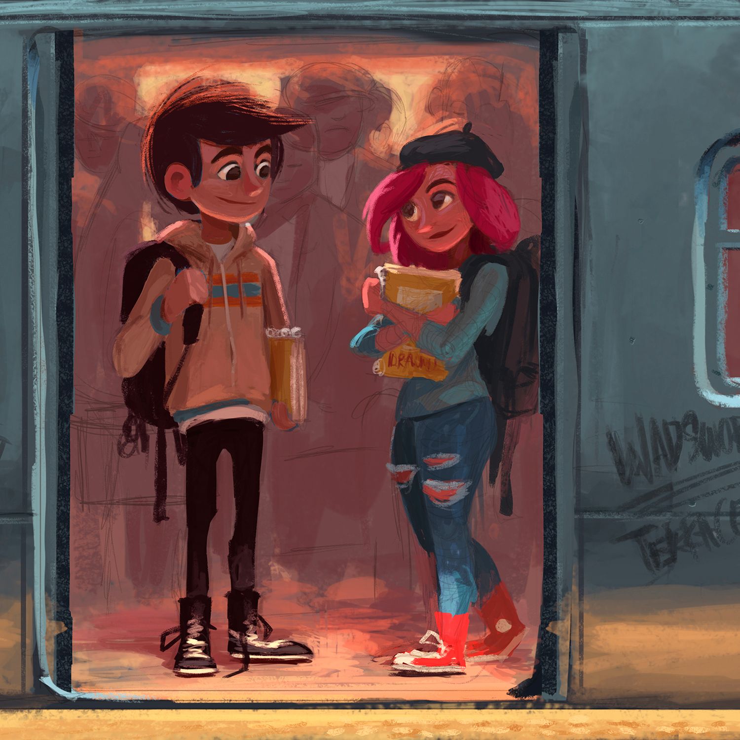 Cuando llegó a la adolescencia, ya había comenzado a pintar paisajes y naturalezas muertas al óleo, inspirado por las estéticas de Bob Ross, la animación de Disney y uno de sus favoritos de siempre: Norman Rockwell. Fue en estos años que comenzó a explorar las técnicas tradicionales y a desarrollar una comprensión del color que más tarde usaría en su diseño de personajes.
