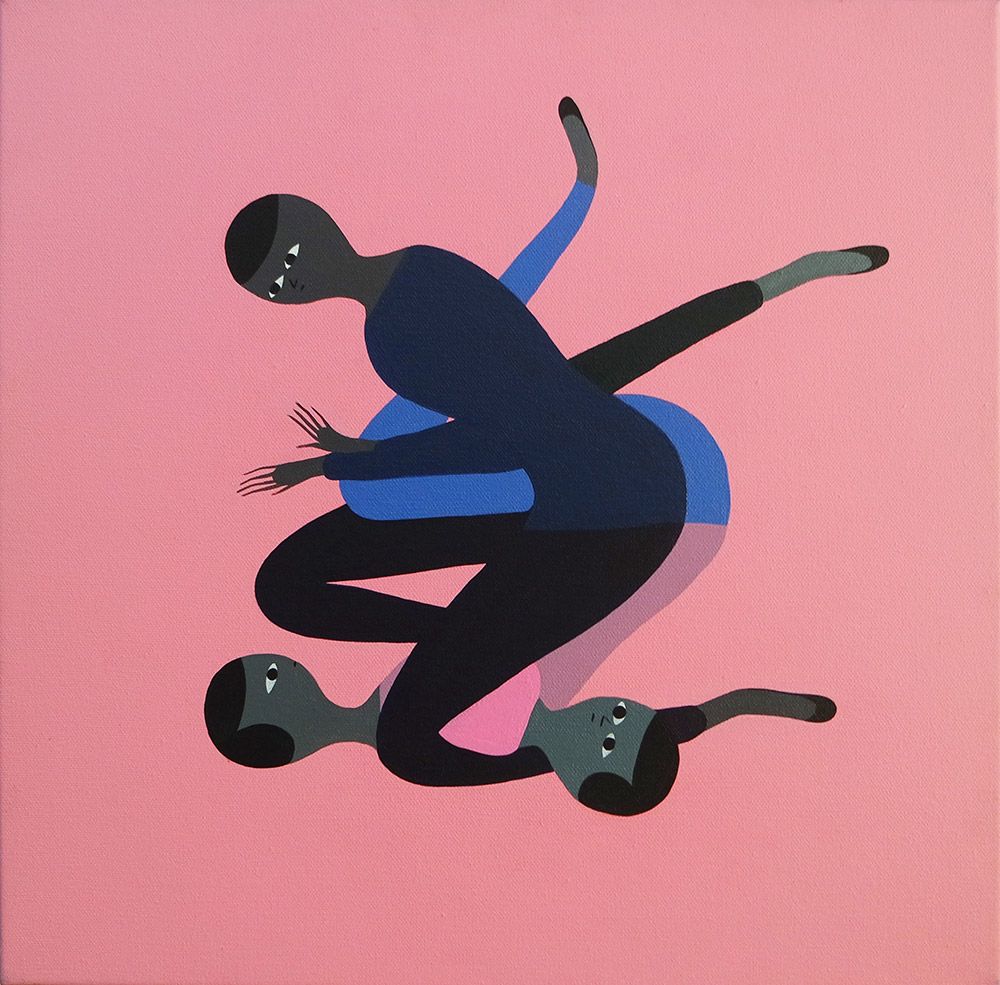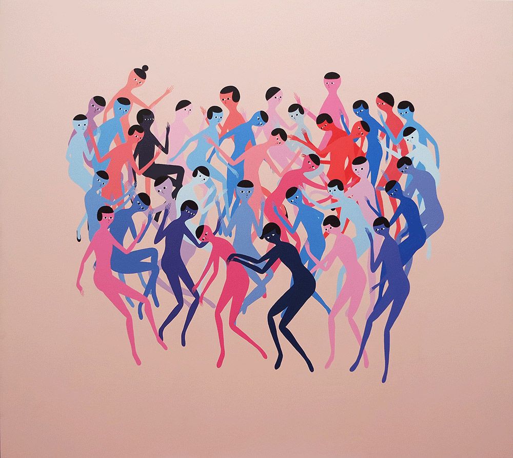 En las pinturas de Santiago Ascui los cuerpos se entremezclan en un imposible puzle anatómico, otras veces se funden con el fondo o las figuras se multiplican como un acordeón, creando ilusiones incomprensibles, casi jeroglíficas, de una belleza tan primitiva y minimalista que resulta irresistible.