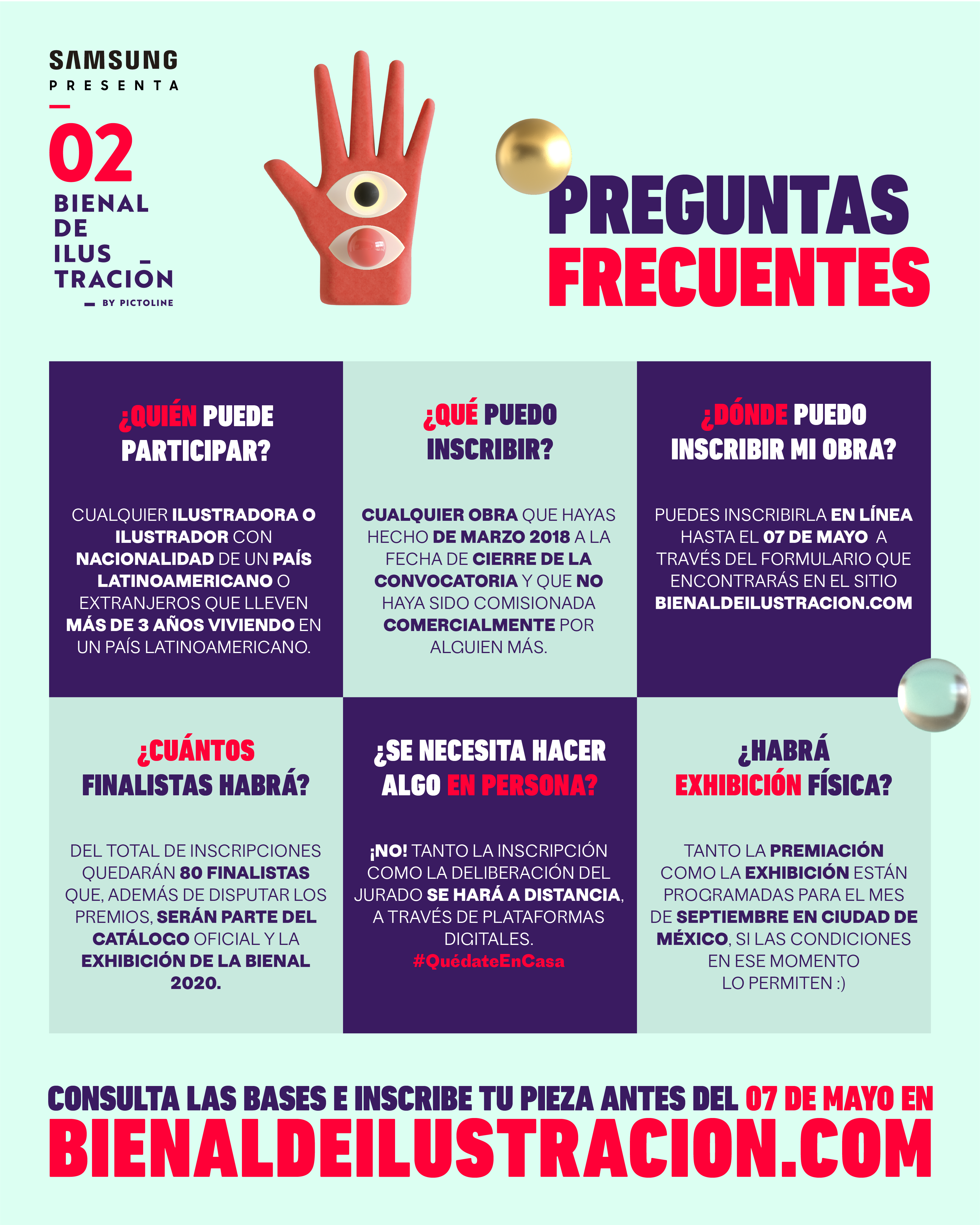 La convocatoria cierra el 7 de mayo de 2020, y para inscribirse hay que ingresar al portal de la convocatoria. Los eventos de premiación, exhibición, conferencias y otros serán programados en septiembre y octubre en la Ciudad de México.