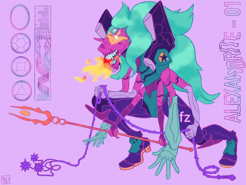 El fan art de este nicaragüense consiste en un crossover entre Alexandrite, de Steven Universe, y la Unidad 01 de Evangelion.