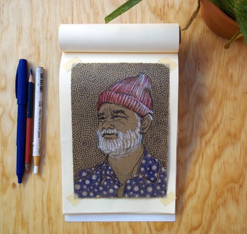 Este creativo disfruta del dibujo, por lo que participó con un retrato de Bill Murray caracterizado como el Capitán Steve Zissou (La Vida Acuática , Wes Anderson).