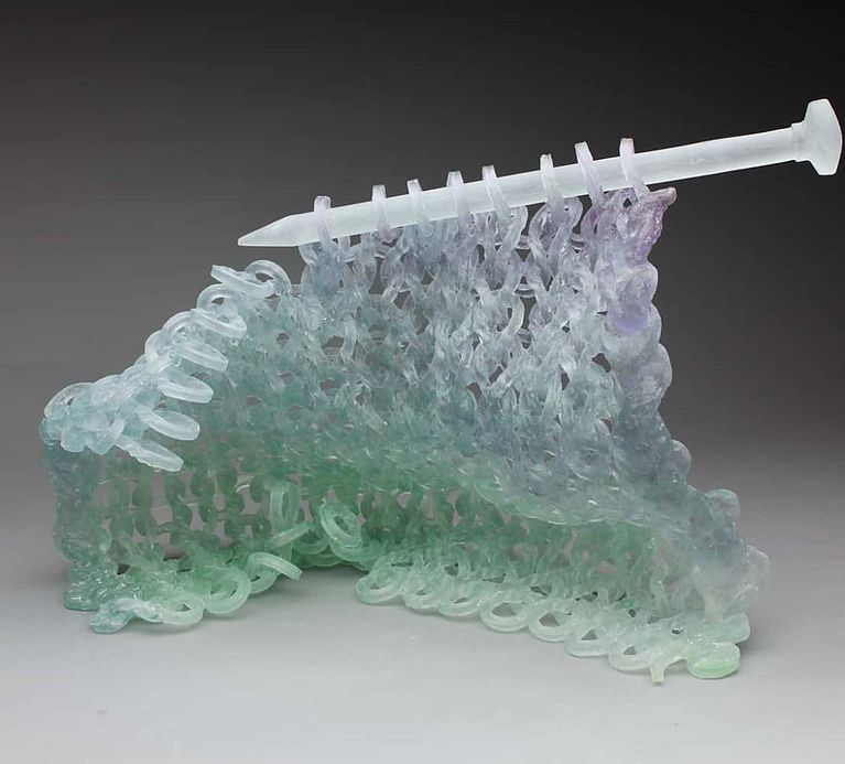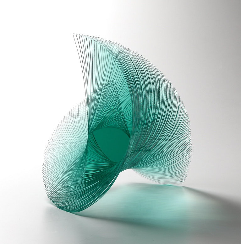 Graduada de paisajismo arquitectónico en Canadá, descubrió su amor por la escultura experimentando con distintos materiales como arcilla, bronce, madera y concreto. Es pionera del vidrio tejido: crea un material de vidrio que teje en agujas para crear estas frágiles piezas. “Veo mi trabajo tejido como una metáfora de la estructura social. Las piezas individuales son débiles por sí mismas, pero fuertes cuando están unidas”, afirma.