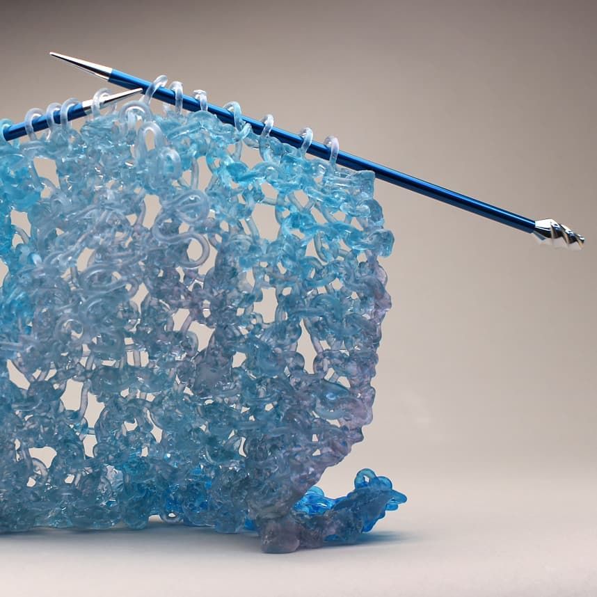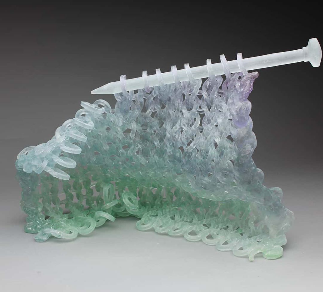 Graduada de paisajismo arquitectónico en Canadá, descubrió su amor por la escultura experimentando con distintos materiales como arcilla, bronce, madera y concreto. Es pionera del vidrio tejido: crea un material de vidrio que teje en agujas para crear estas frágiles piezas. “Veo mi trabajo tejido como una metáfora de la estructura social. Las piezas individuales son débiles por sí mismas, pero fuertes cuando están unidas”, afirma.