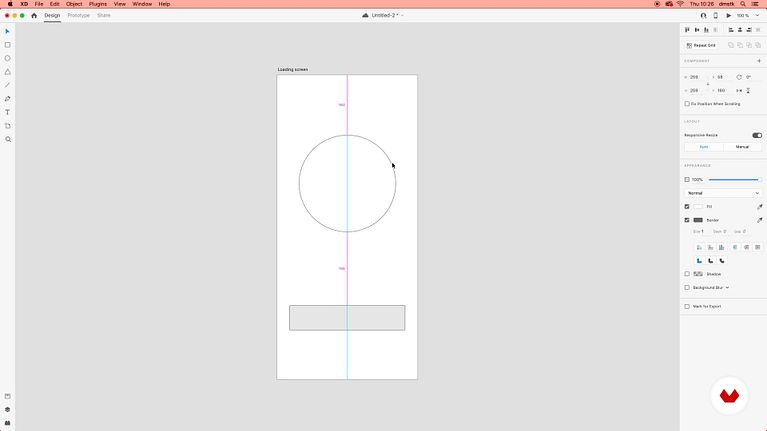 5. Para centrar una forma, usa la herramienta Seleccionar para moverla. Aparecerá una línea en el centro de la mesa de trabajo cuando la forma está colocada en el centro.