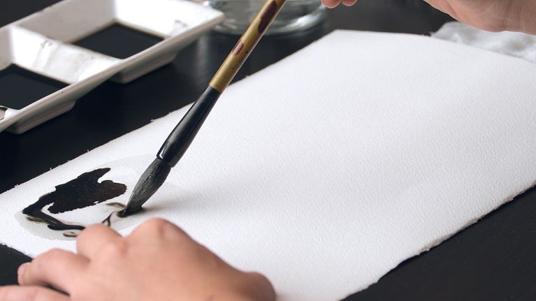 Además del papel de acuarela, el papel de dibujo (Bristol) es una buena opción para trabajar con tinta china. Puedes hacerlo mojando una bolita de algodón sobre la tinta y aplicándolo para crear un efecto de mancha muy diferente al del pincel.