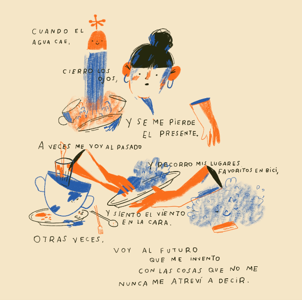 La inspiración de mi trabajo la encuentro en el mundo cotidiano. Paso la mayor parte del tiempo trabajando en casa, así que disfruto observar las cosas que tengo a mi alrededor: salir a caminar, ver lo que pasa por la ventana; la cotidianidad. Me gusta observar y detenerme en las cosas que para muchos pasan desapercibidas o no son tan relevantes (me considero una espía ultrasecreta). Mi proceso a la hora de crear es encontrar esa situación que me llama la atención y transformarlo en mi lenguaje visual.