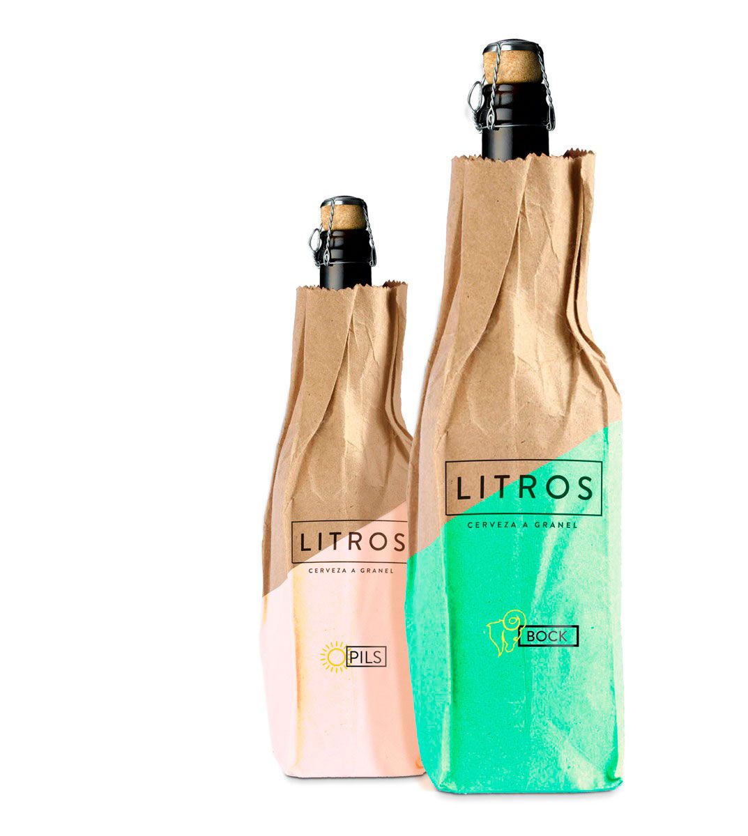 Litros es una cerveza artesanal fabricada según el método tradicional al que se le han añadido toques vanguardistas, igual que ocurre con su imagen y el packaging que se ha diseñado para comercializarla. Ambos destacan por la sencillez y la homogeneidad, sólo rota por los colores que marcan de una manera simple y efectiva el estilo de cerveza.