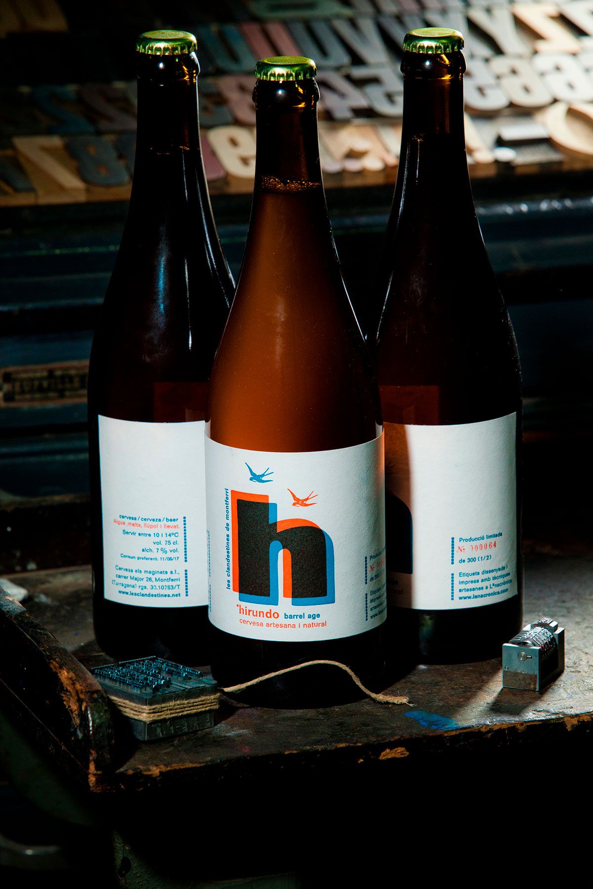 Hirundo es el resultado de mezclar cerveza con tipos de plomo en una imprenta. Un branding sencillo, limpio y efectivo con toques tradicionales y un diseño moderno que encajan a la perfección con el espíritu de lo hecho a mano que una cerveza artesanal y natural como esta pretende mostrar.