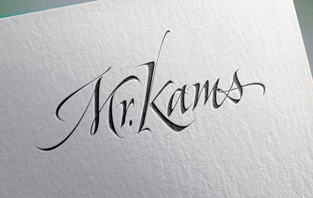 Desde principios de los años 90 Víctor Kams, conocido en el sector artístico como Mister Kams, ha estudiado la composición de las palabras y la manera de dibujarlas. La caligrafía, en sentido estricto, es el arte de escribir con letra artística y correctamente formada; pero a manos de Mister Kams este concepto cobra una nueva dimensión. Él comprende la letra como una imagen en sí misma y la dibuja como una ilustración, buscando el equilibrio entre la estética y el valor de la palabra que quiere representar.