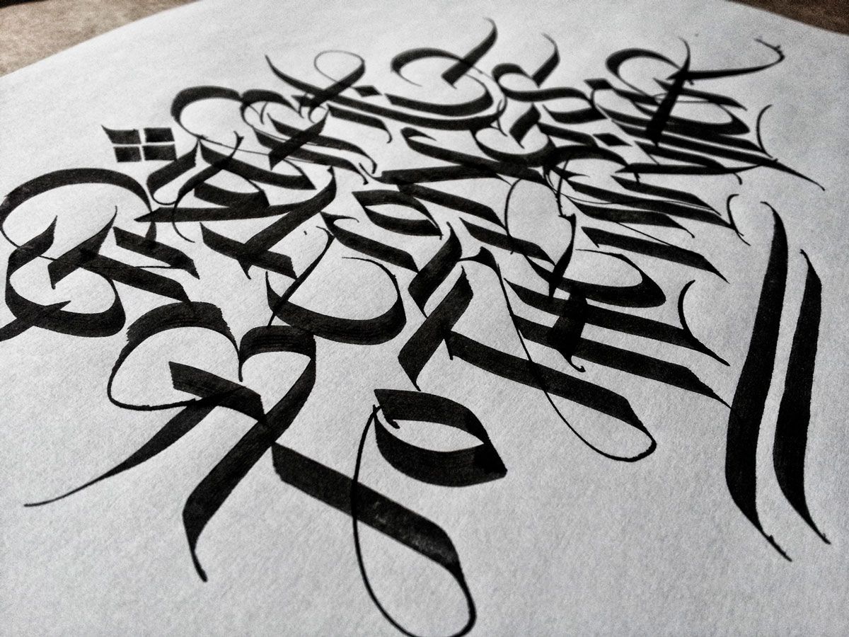 Este diseñador madrileño ha dedicado toda su vida a las letras. Dibuja caligrafía, respira caligrafía y vive la caligrafía.