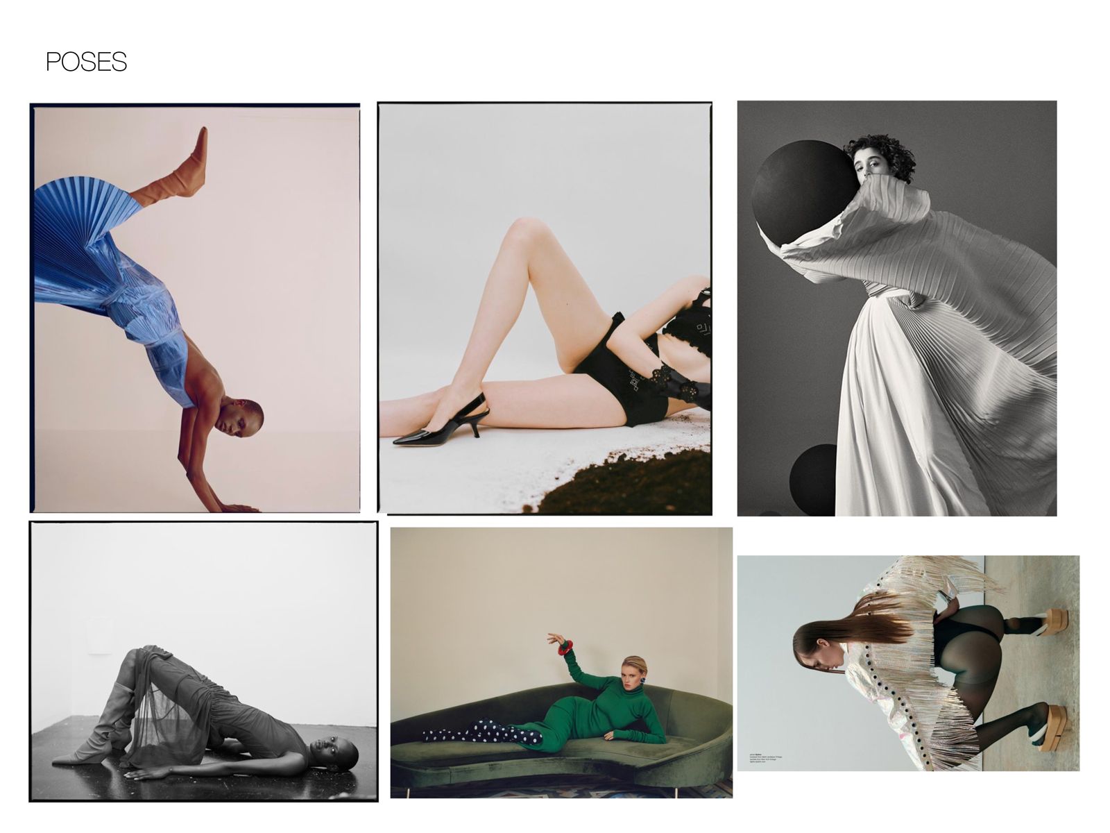 Habitualmente, cuando es la editorial quien se pone en contacto con nosotros para realizar el shooting, suelen tener unas ideas bastante claras de lo que quieren ver en sus páginas y es probable que nos envíen un mood board con ideas. Para aterrizar nuestros conceptos creativos, especialmente si hacemos la editorial de manera independiente, es muy recomendable crear un panel de ideas en el que podemos plasmar desde la idea general que queremos lograr a otras más específicas como las poses que nos inspiran, la paleta de color que queremos mostrar, el tipo de peinado o vestuario o las localizaciones en las que nos gustaría fotografiar, por citar solo algunos ejemplos.