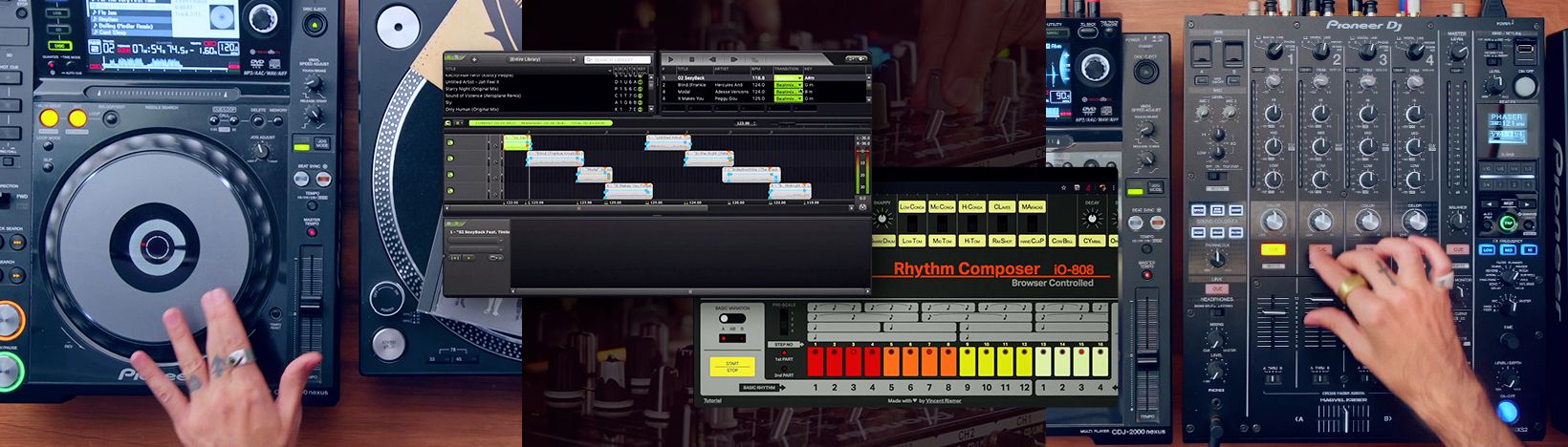 Es la mezcladora de audio con la que podrás crear efectos como fade in. Cuentan con controladores para cortar graves, medios y agudos y otros efectos, además de contadores manuales o automáticos de BPM.