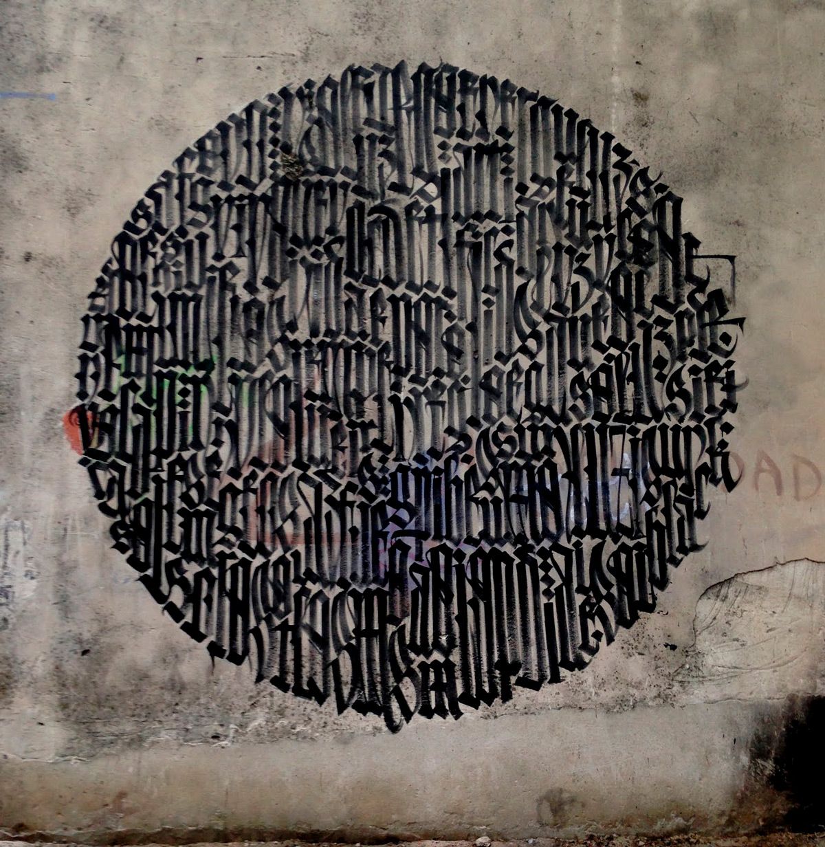 Ha experimentado con light painting, pinturas especiales y ha mezclado caligrafía y grafiti. Este mexicano amante de las letras manuscritas es quien está llevando la caligrafía fuera del papel a su máximo exponente, colocándolo en las calles, a la vista de todos y en las galerías, ensalzándolo y elevándolo a una categoría que se ha ido perdiendo a lo largo de los años.