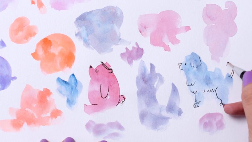 Aprende la técnica de convertir manchas en personajes para perder el miedo a la acuarela y combatir el bloqueo creativo con Alinailustra