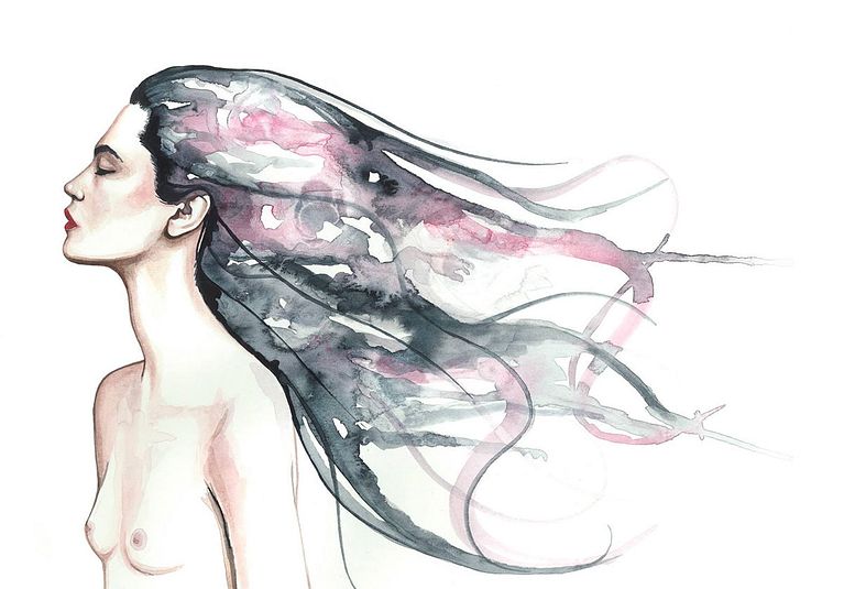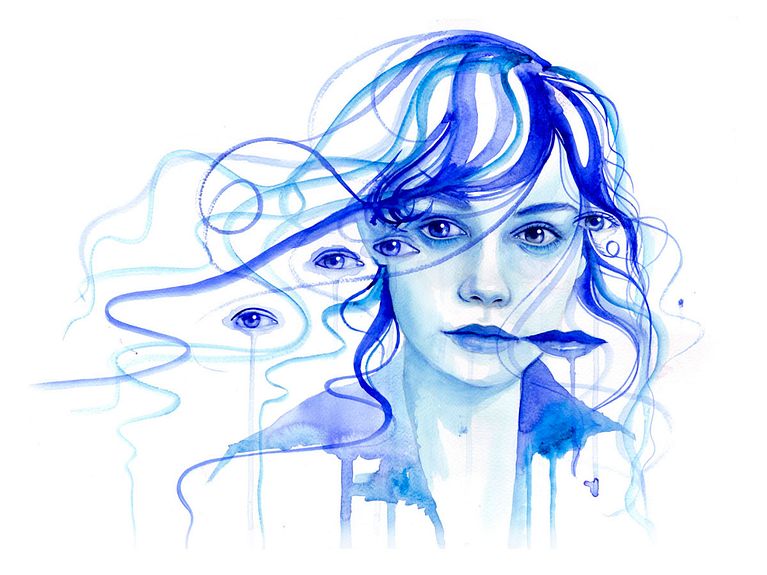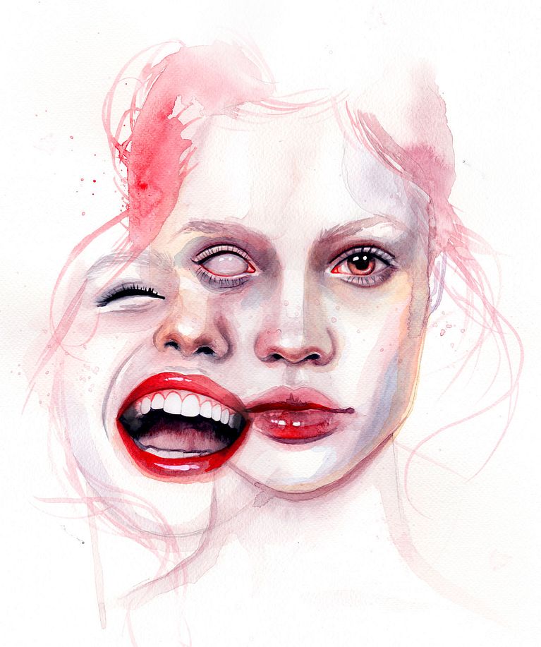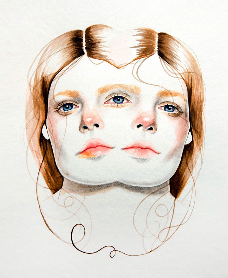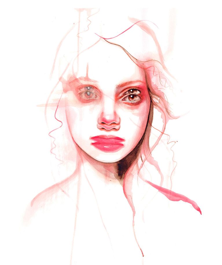 El trabajo de Mónica Loya tiene mucho estudio anatómico detrás. La precisión de sus dibujos se superpone con la visión surrealista que imprime sobre gran parte de sus trabajos.Las musas de esta ilustradora mexicana son, casi en su totalidad, mujeres. Las pinta con acuarela, haciendo que sus rasgos se desvanezcan y se mimeticen con la hoja en blanco, pero también que se fundan con otros retratos de una manera casi fantasmagórica.
