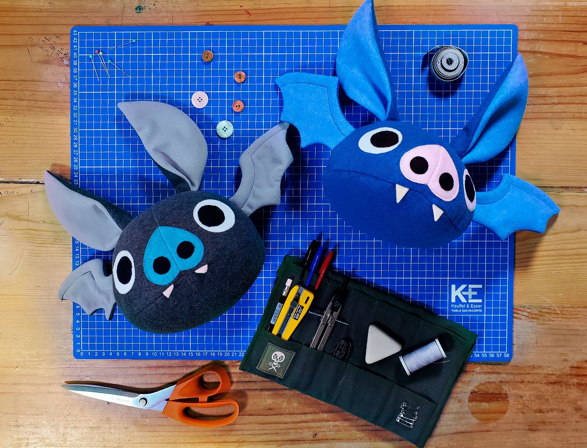 Prepara todos los materiales y ponte manos a la obra para darle forma a este murciélago de peluche con dientes de vampiro