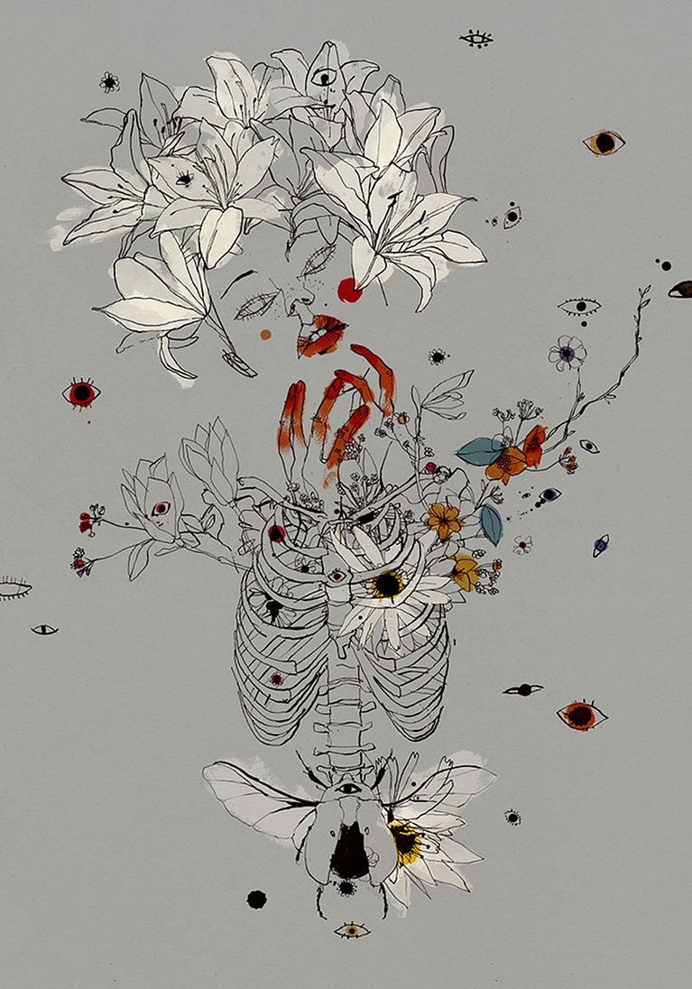 Usando lápiz, tinta y acuarelas, Conrad Roset muestra la delicadeza y expresividad de los cuerpos, muchas veces fusionándose con motivos vegetales o desvaneciéndose con el propio entorno. Sus trabajos evocan irremediablemente el trabajo de Egon Schiele, tanto en temática como en ejecución, pero el catalán sabe interpretar la feminidad y llevársela a su terreno, redefiniéndola.