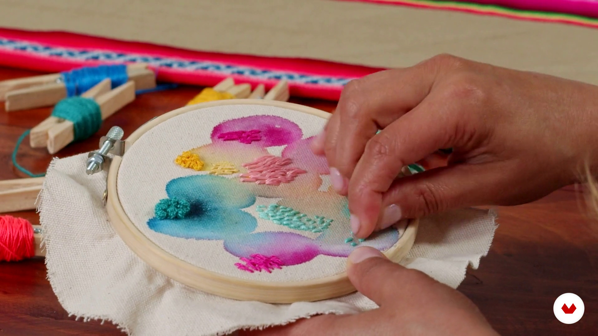La artista Katy Biele explica en esta lección del curso Técnicas básicas de bordado y acuarela cuáles son las posibilidades de fusionar el bordado con la pintura. Explora trabajar con diversos tipos de tela, combinaciones de materiales y pintura para lograr una infinidad de proyectos creativos.