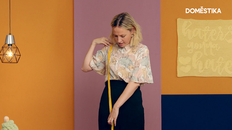 Para calcular el largo, tienes que colocar la cinta desde el hombro hasta donde quieres que termine tu patrón, siempre en vertical.