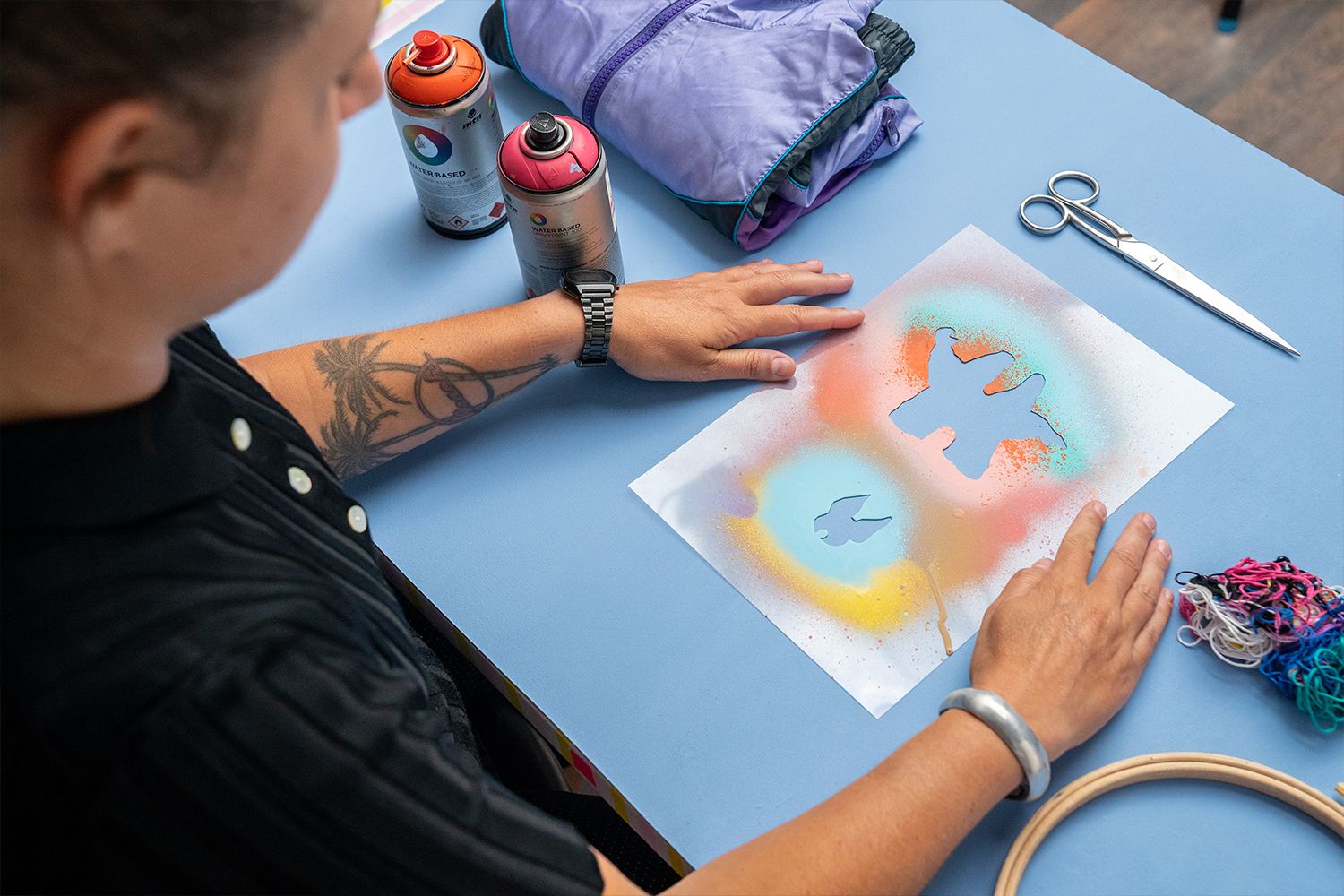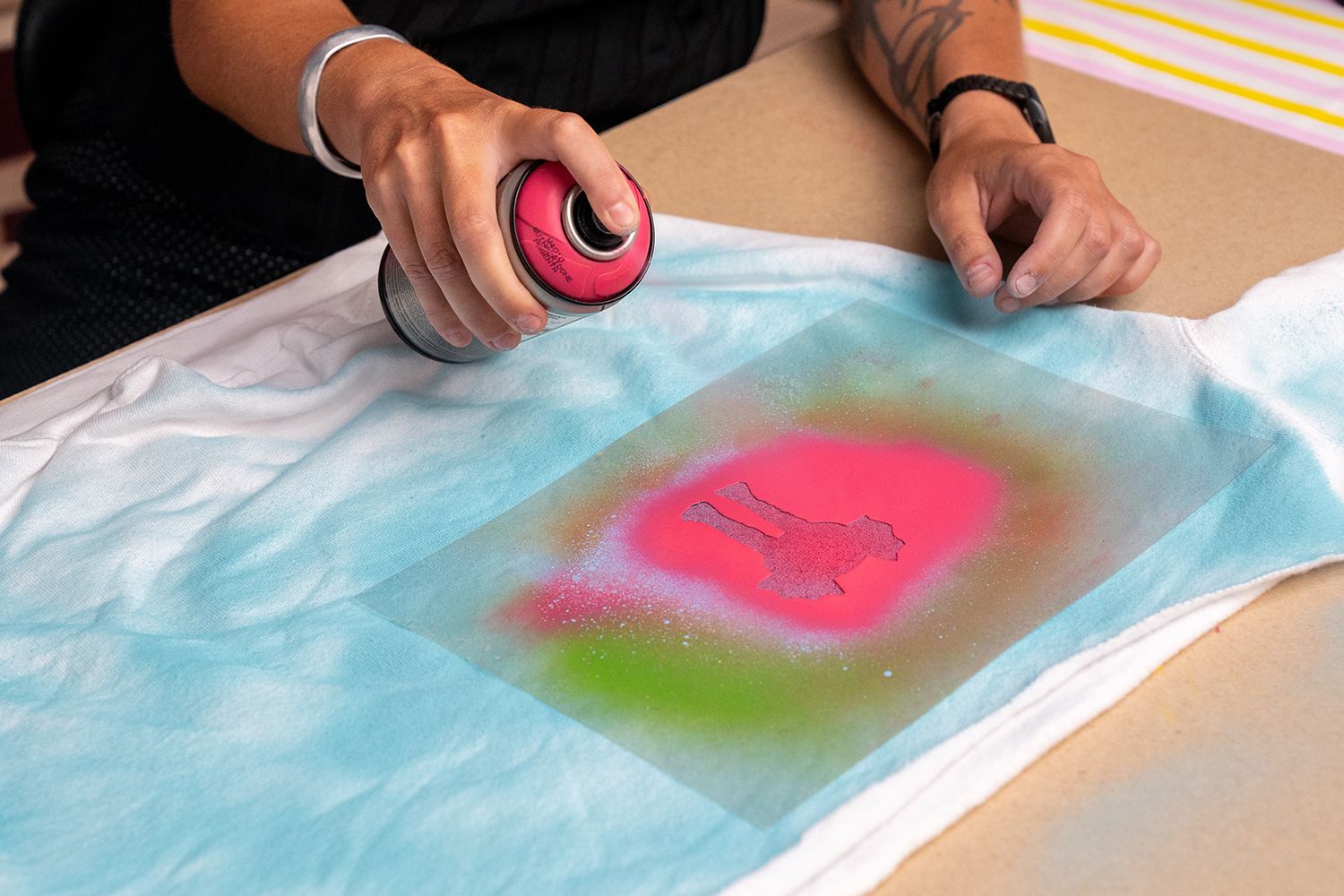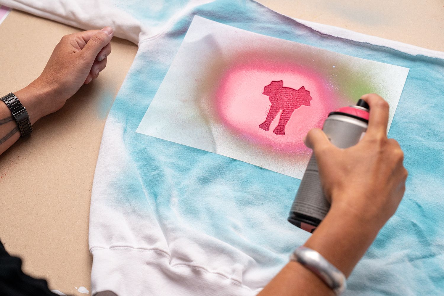 A continuación te mostramos algunas imágenes de cómo a partir de una sudadera deportiva es capaz de crear dos prendas: un vestido y un sombrero con la técnica esténcil y pintura spray. El upcycling no tiene límites.