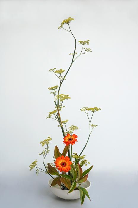 La estructura clásica de los arreglos se basa en tres puntos principales, que simbolizan el cielo, la tierra y el hombre (Taiso Fuku), y no solo utiliza flores, sino también ramas, hojas, semillas y frutos.