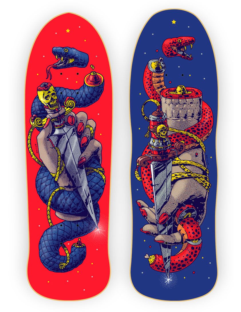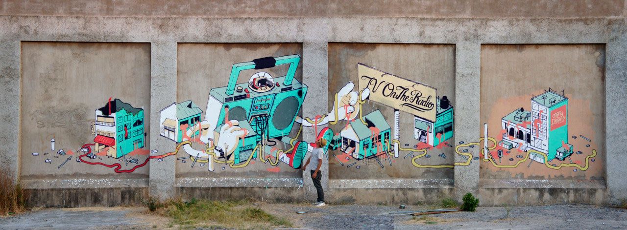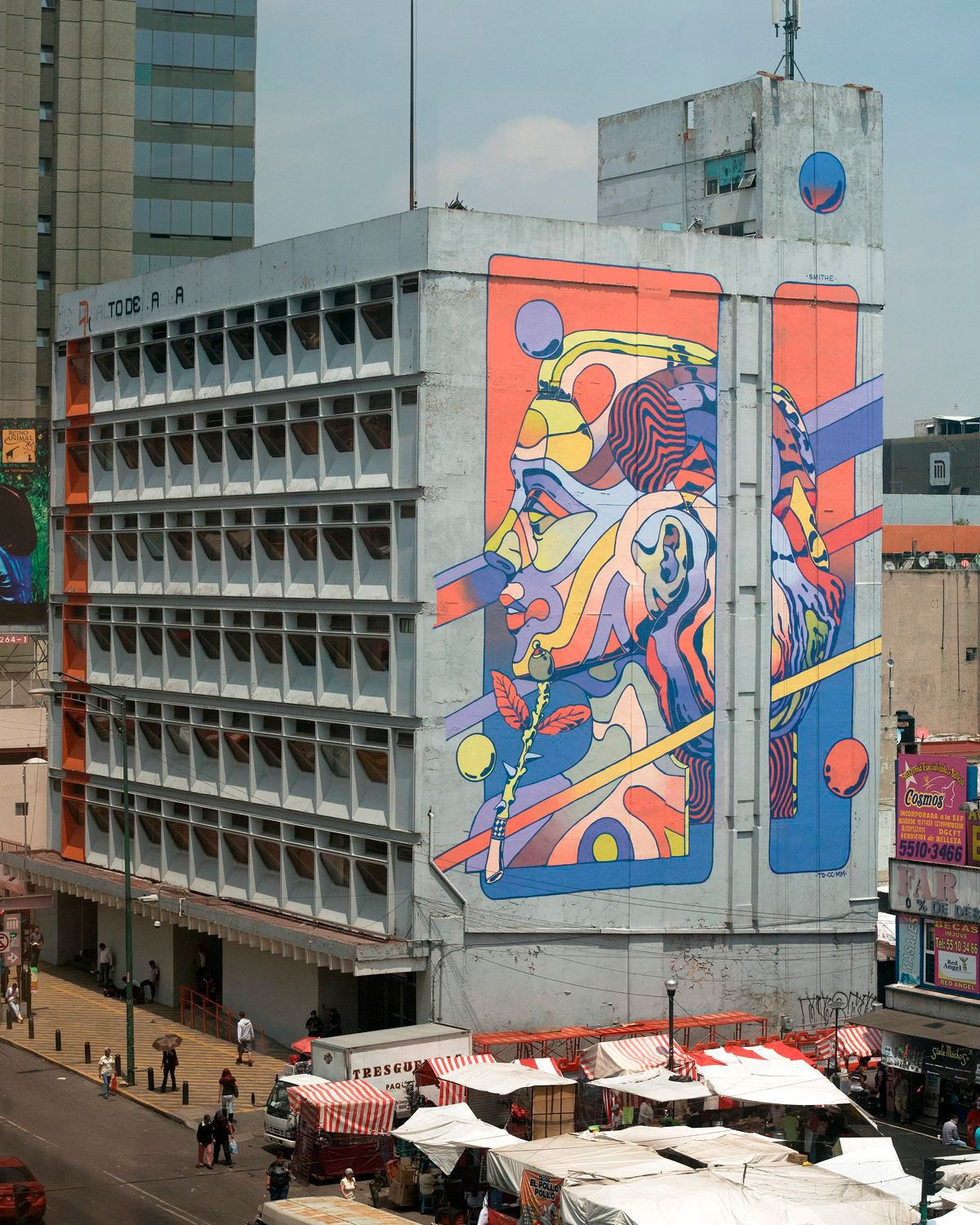 Smithe ha aplicado su impronta en todo tipo de soportes, desde papel a grandes muros, pasando por superficies textiles. Toda superficie susceptible de ser impresa o pintada por cualquier tipo de método podría terminar adornada por el talento de este ilustrador y artista urbano mexicano.