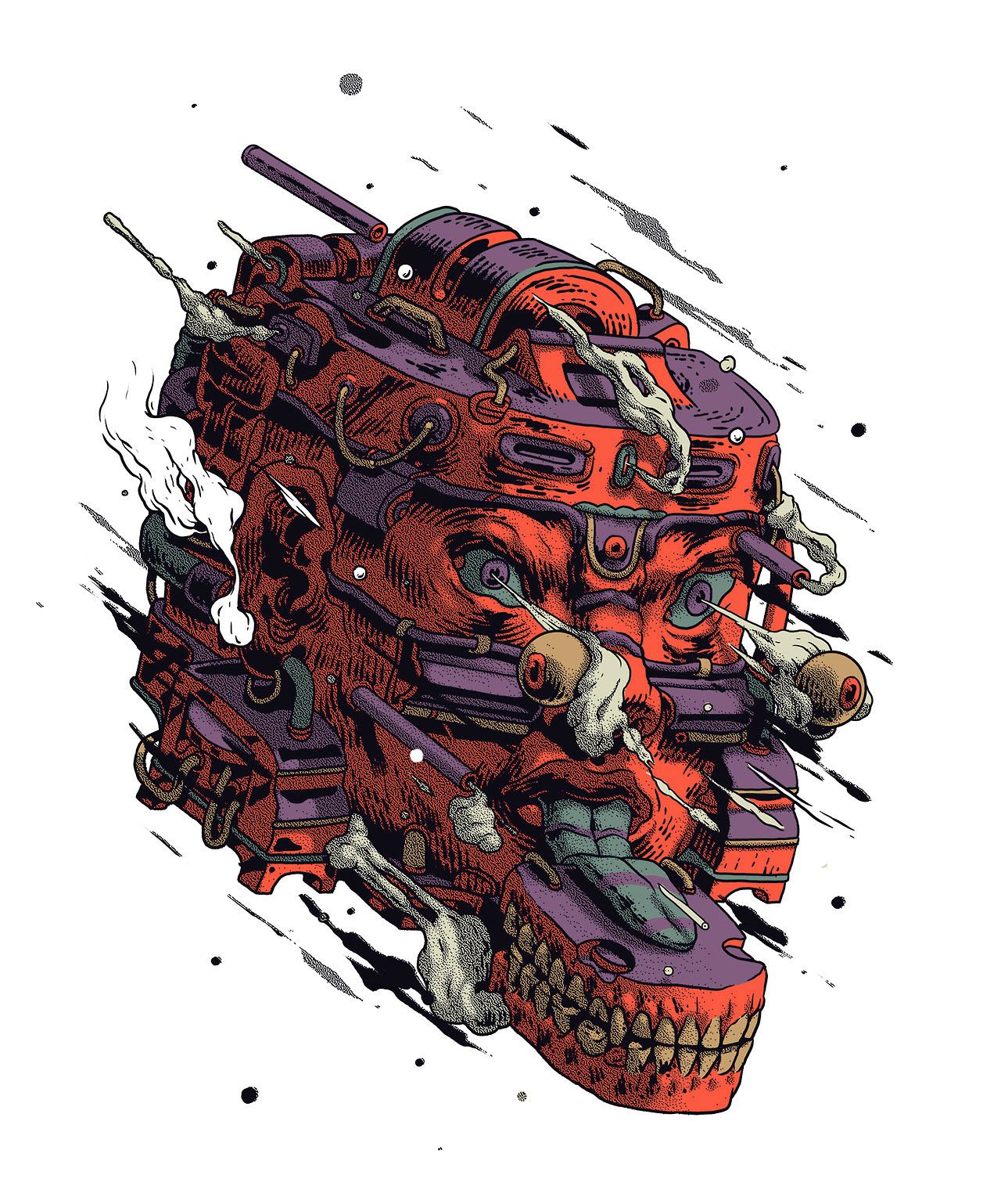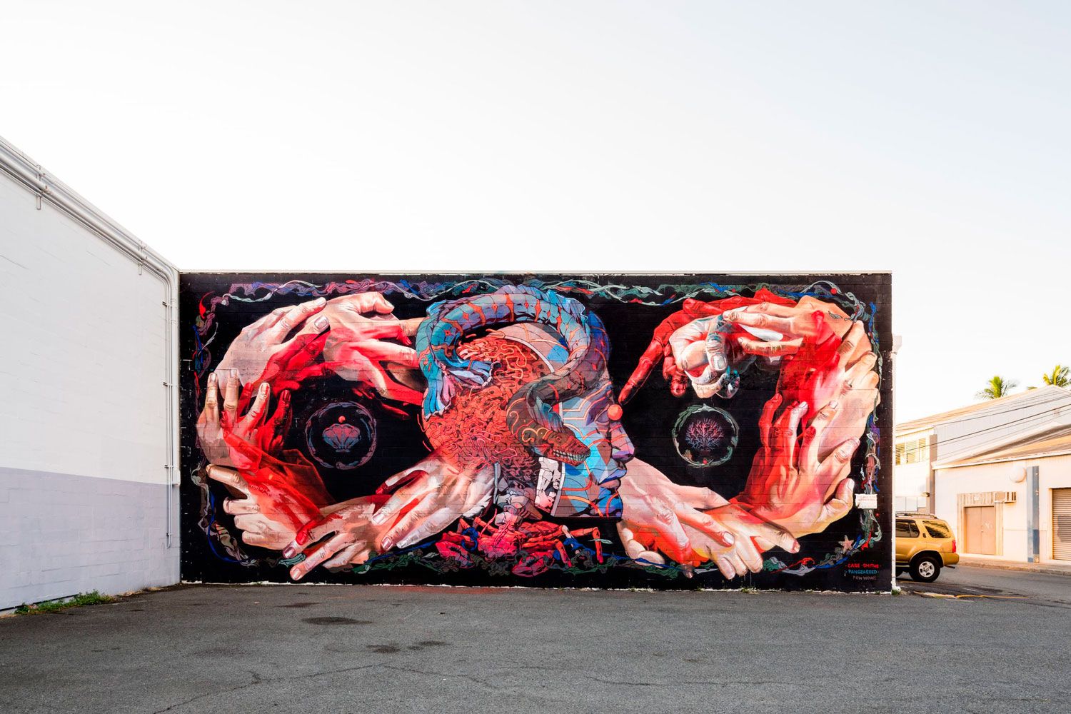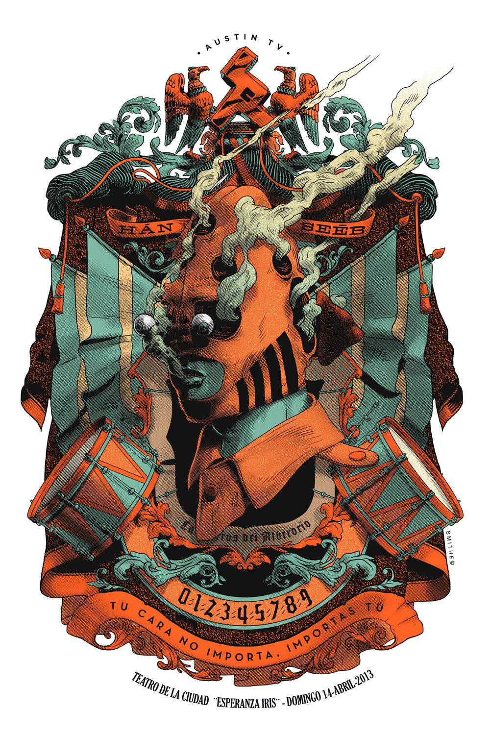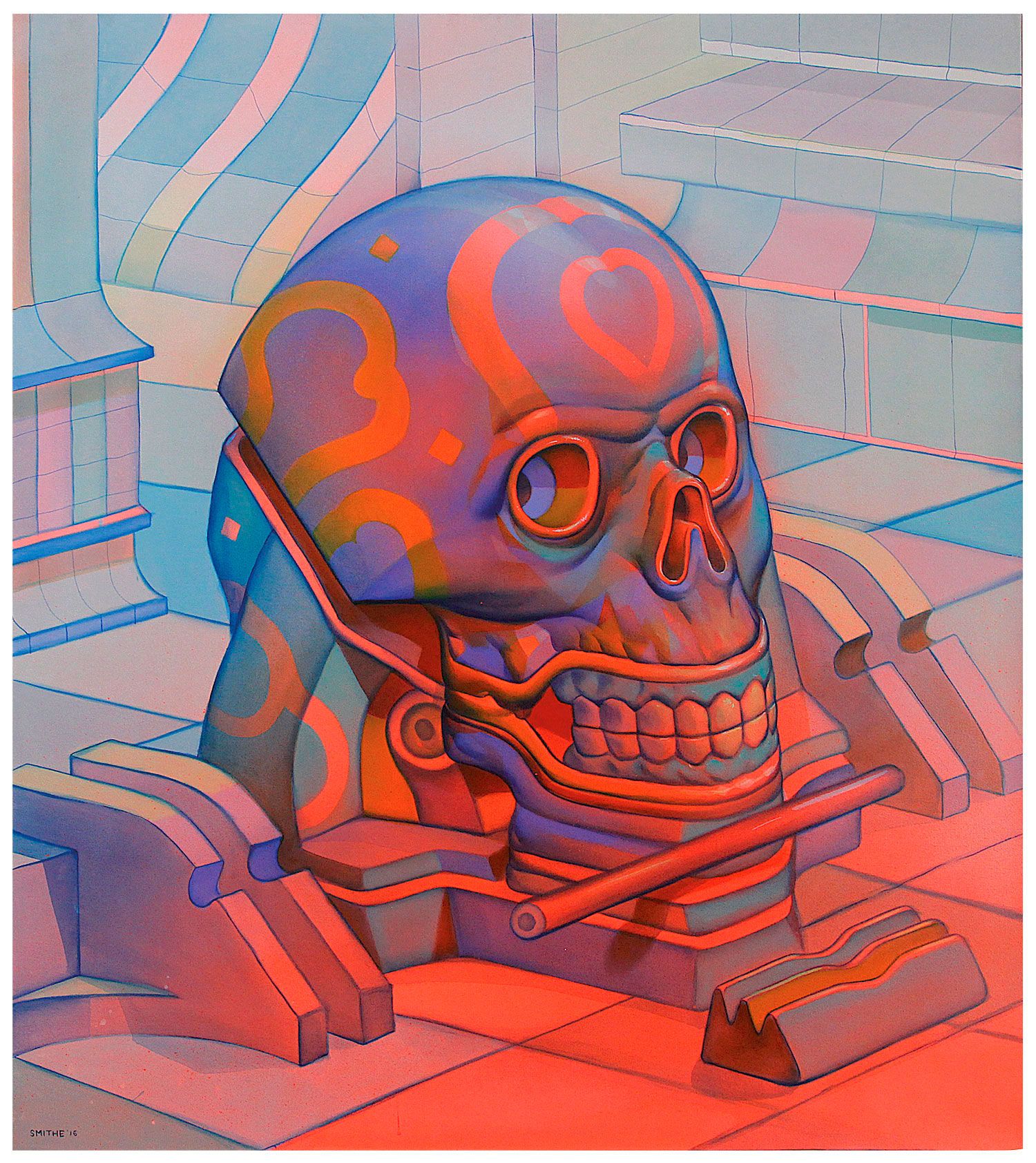 Si algo tienen en común las ilustraciones y el arte urbano de Smithe son sus tintes psicodélicos y la fijación del mexicano por los cráneos y las calaveras. Las manos y otras figuras anatómicas también suelen aparecer con frecuencia en sus trabajos, aunque no necesariamente de una manera realista. Haciendo gala de un maravilloso uso del color y las texturas el artista hace su propia interpretación de un submundo con grandes dejes de ciencia ficción y futurismo.