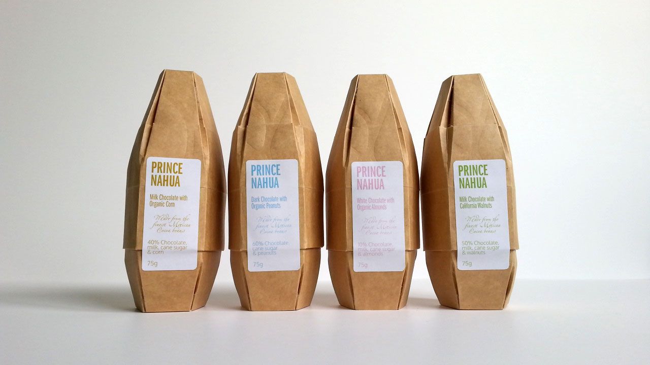 Fusionando los conceptos de geometría, presente en las líneas del envoltorio y naturaleza, tangible en el tipo de material escogido y en la simbología de las formas representadas, la diseñadora Miren Camara simula las vainas de cacao para crear el packaging de cuatro tipos de chocolate premium.