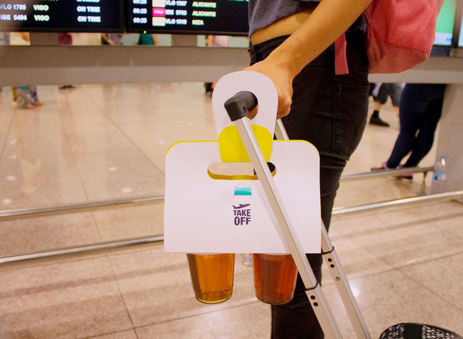 La comida de los aviones puede llegar a ser una auténtica pesadilla, por lo que es importante aprovechar los últimos momentos en tierra para alimentarse como es debido. Este divertido packaging de comida para llevar con temática viajera incorpora pasatiempos para usar durante el vuelo y prácticos mecanismos que permiten cargar con la comida y las maletas al mismo tiempo.