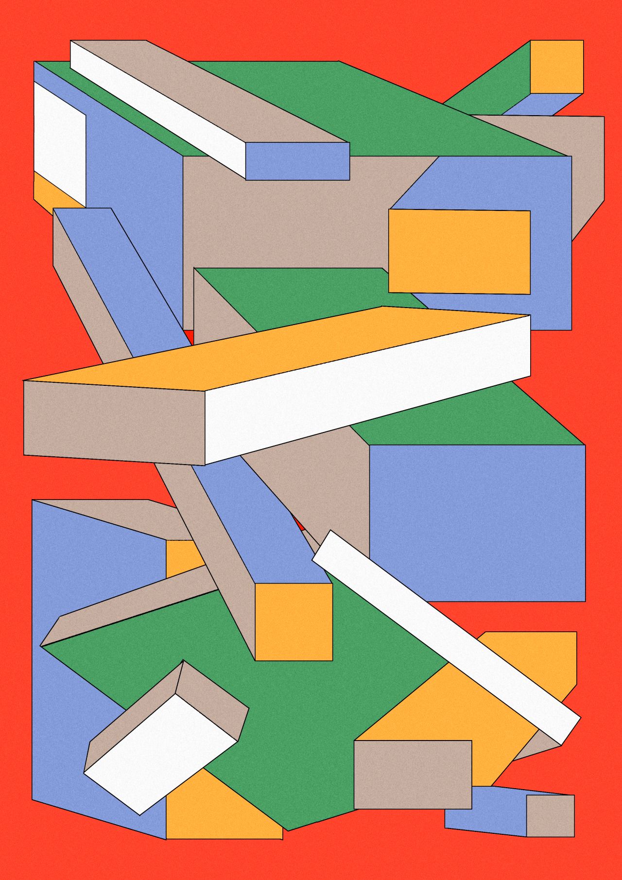 Sus ingredientes favoritos son el color, las formas geométricas, las texturas y los degradados. Cada una de sus imágenes es un ejemplo de composición y equilibrio y evoca a los grandes maestros de la abstracción geométrica.