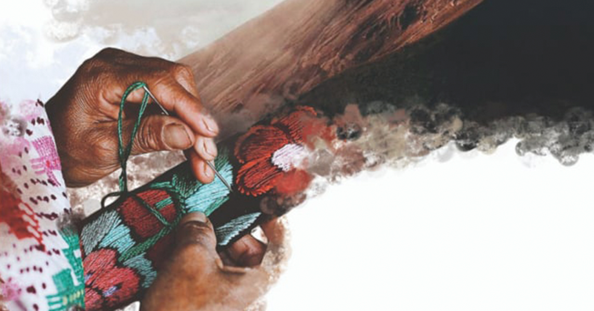 A través de su collage honra a las artesanas guatemaltecas, mujeres con un rol clave en la historia y cultura de ese país.