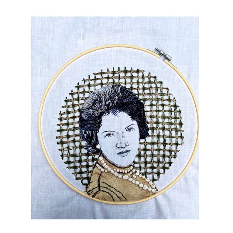 A través de este retrato bordado, rinde homenaje a su madre por ser una de las mujeres más importantes en su vida y por compartir sus saberes manuales y los de sus antecesoras con ella.