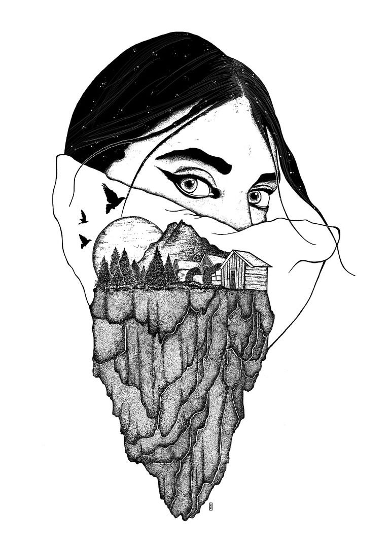 Utilizando la técnica de acuarela y lápiz digital realizó esta ilustración inspirada en una admirada amiga artista.