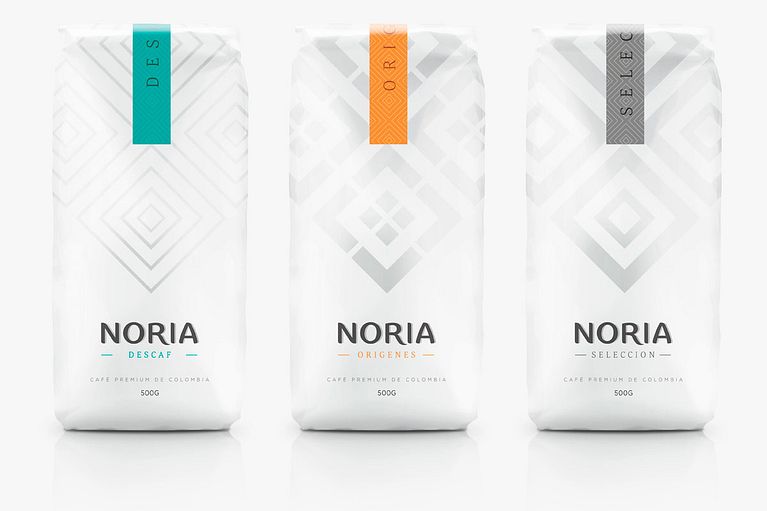 La nota más importante de este café es su pureza, por eso el diseñador catalán Diego Frayle eligió el color blanco, combinado con sutiles líneas grises plateadas para recoger cada uno de los granos de este café colombiano. El patrón y una pequeña nota de color son quienes definen las variedades.