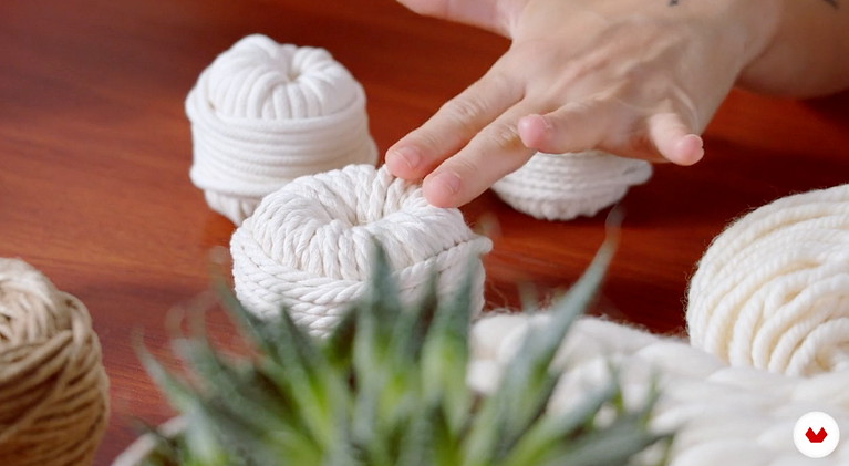 Hay tres tipos: la cuerda trenzada de 5 mm, la cuerda retorcida de 5 mm para los flecos, y la cuerda trenzada de 3 mm para el acabado. La primera, de hecho, es una de las favoritas de Natalia. "La utilizo en la mayoría de mis trabajos", afirma.