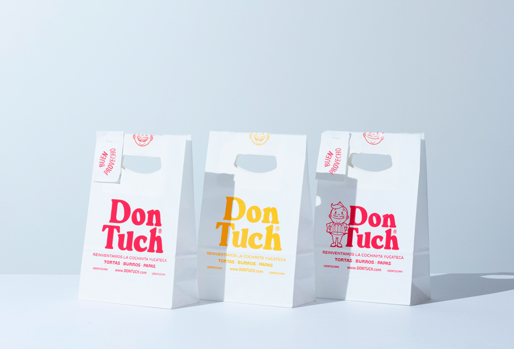 Don Tuch es un proyecto de comida rápida ubicado en la Ciudad de México que se centra en las tradiciones gastronómicas de Yucatán. Para la identidad del proyecto, Human quería un contraste juguetón y nostálgico a la vez. Crearon un personaje llamado "Don Tuch" que apoya en resaltar lo amigable del concepto balanceado con una tipografía serif y colores vibrantes en rojo y amarillo.