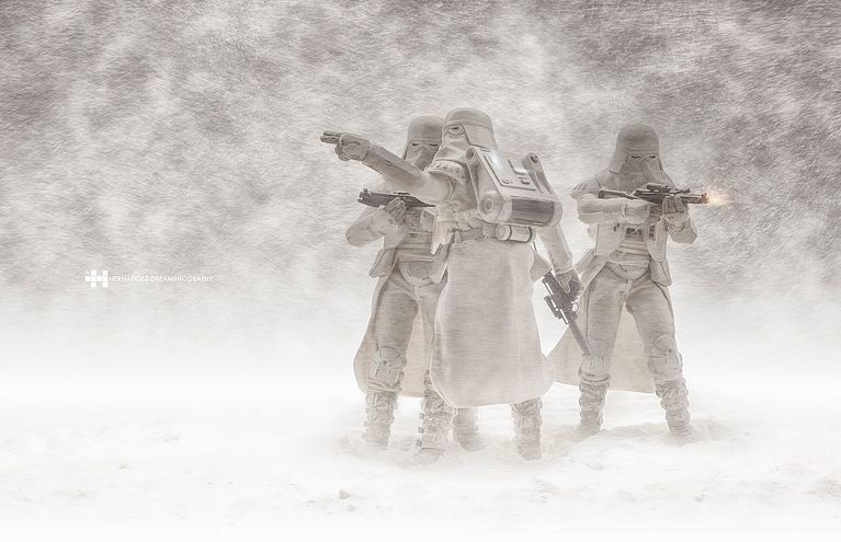 Utilizando su fantástica técnica de fotografía de modelos a escala, el mexicano Félix Hernández, retrata a los Stormtroopers en medio de una tormenta de nieve. Félix te enseña su técnica de fotografía en su curso Fotografía creativa en estudio con modelos a escala.