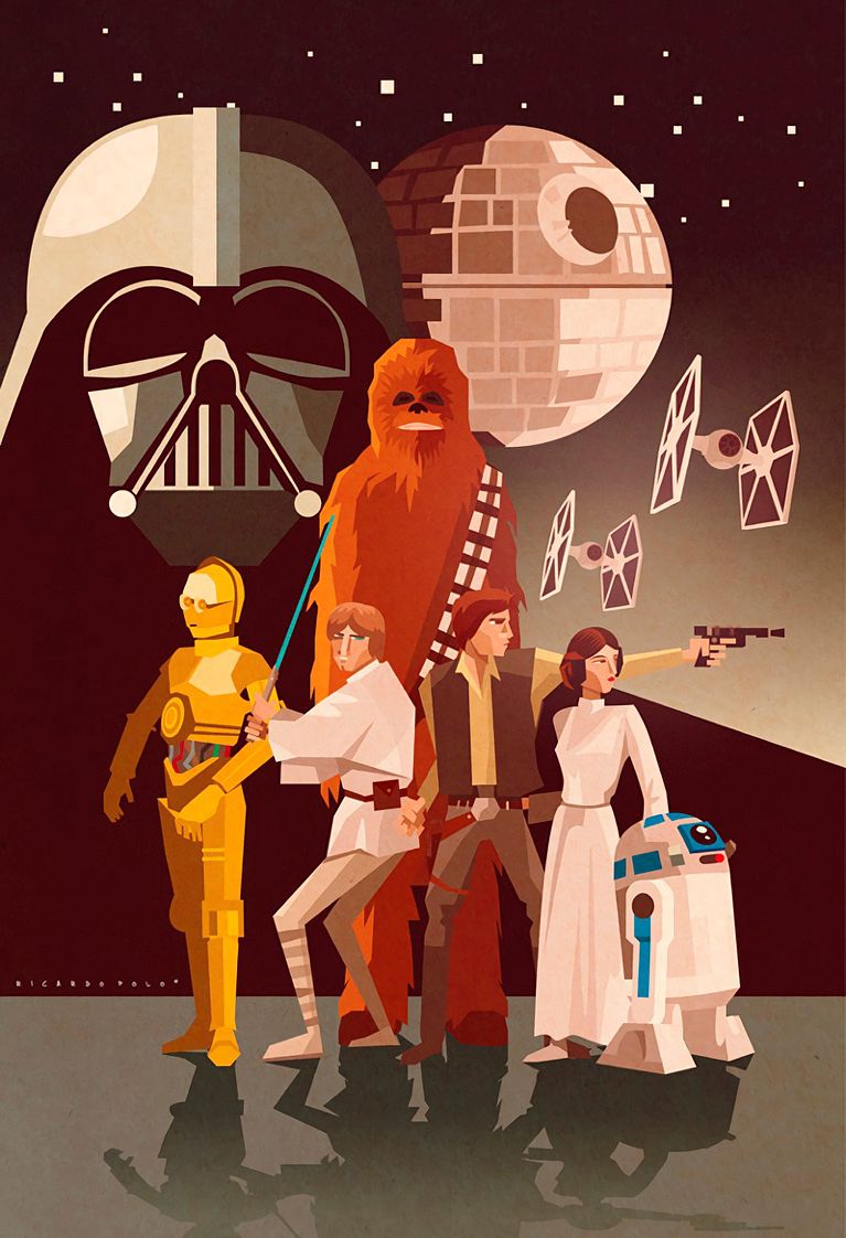 Ricardo Polo ha retratado con sus ilustraciones vectoriales todos los iconos de la cultura pop del siglo XX y Star Wars no podía ser una excepción. Como era de esperar, ha ilustrado a los protagonistas de las películas clásicas de la saga.