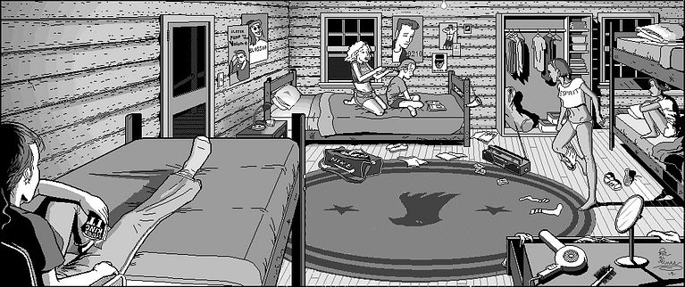 Esta novela ilustrada, ambientada a principios de los 80, acerca de un grupo de amigos que viven juntos todo tipo de aventuras en un campamento de verano, es sólo una de las muchas obras que Pat Hines tiene en su haber. El ilustrador ya se ha hecho un hueco en el mundo del pixel art utilizando una técnica prácticamente exclusiva y con la que ha dado forma a todo tipo de personajes y paisajes.