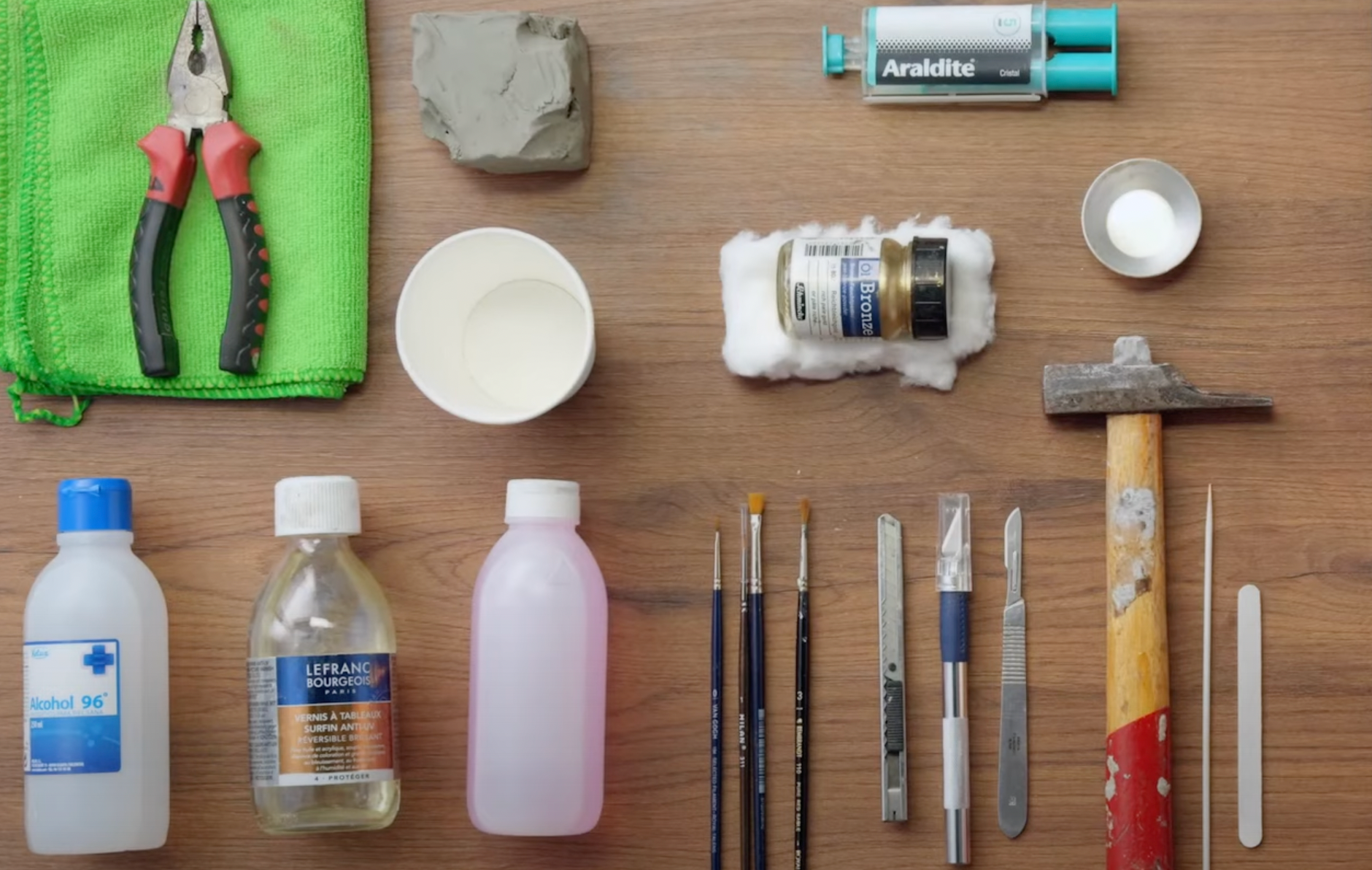 - Martillo: para golpear la pieza y conseguir las roturas que luego restaurarás.
