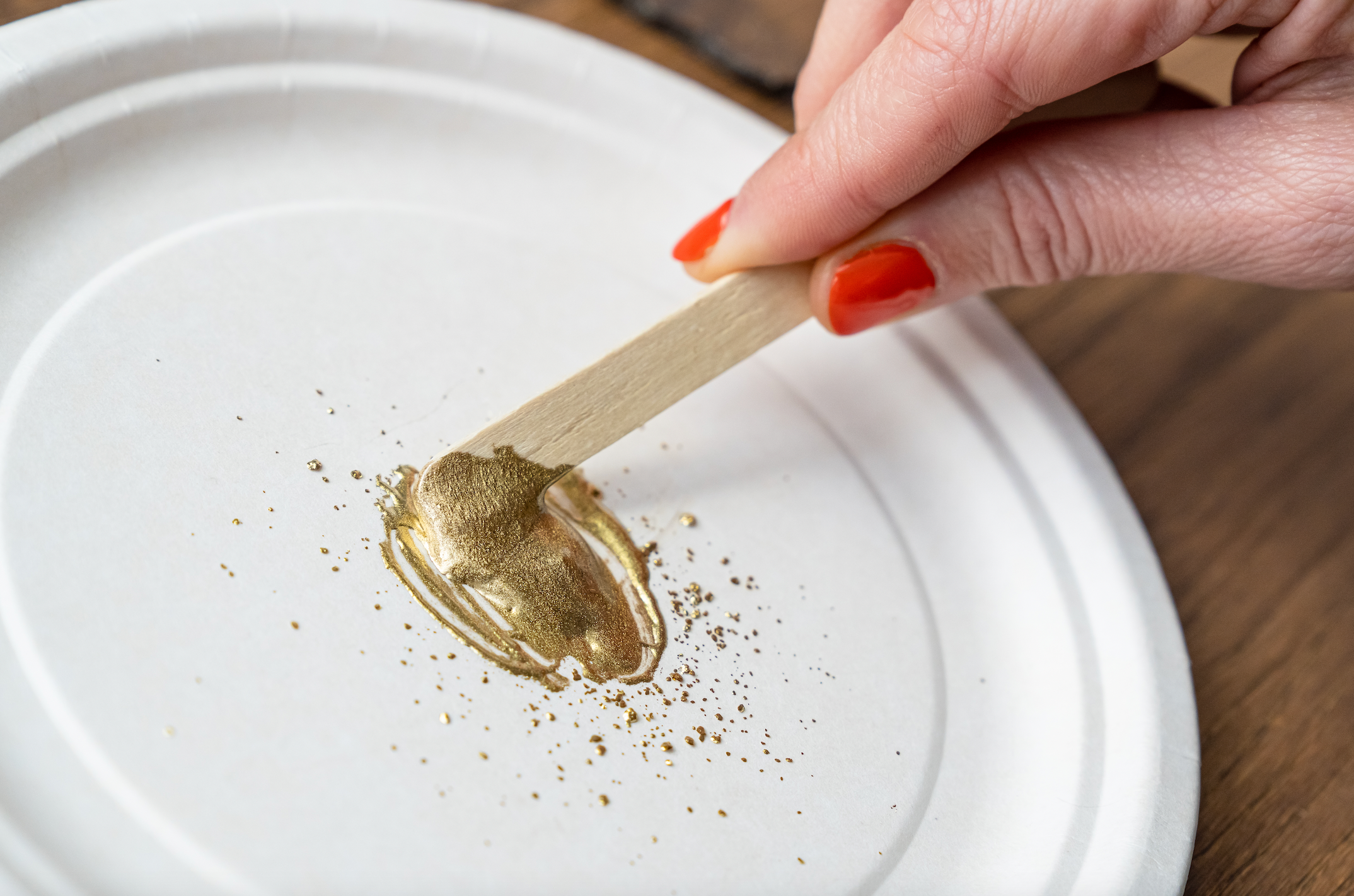 Kintsugi significa “carpintería en oro” así que puedes imaginarte la importancia de este material. Es, junto al barniz, la mezcla que restaura la pieza. En el mercado hay muchas marcas y variedades. La experta te propone elegir el color que quieras. La textura deberá ser muy fina. Como azúcar glas, casi impalpable. De lo contrario, el resultado no será igual de hermoso.