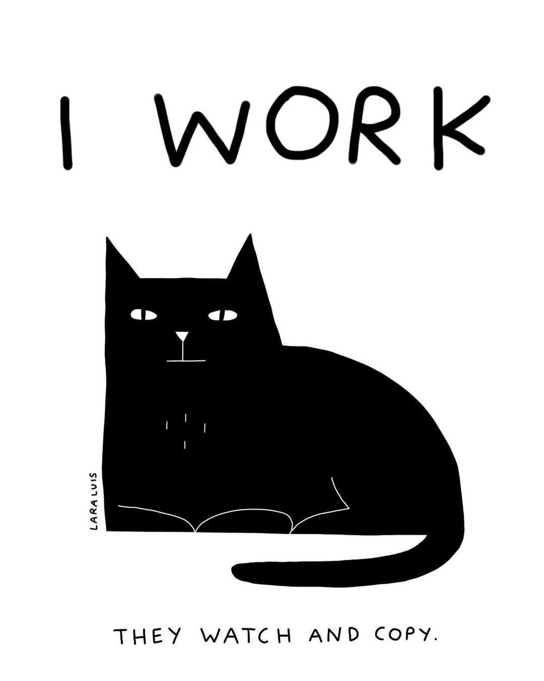 La ilustración que la empresa le robó a Lara es la de un gato negro acompañado de la frase Tú trabajas, yo miro y juzgo que ella creó en 2013. Lara vio cómo su popular gatito negro aparecía estampado en muchos modelos de prendas que, además, se vendían muy bien internacionalmente.