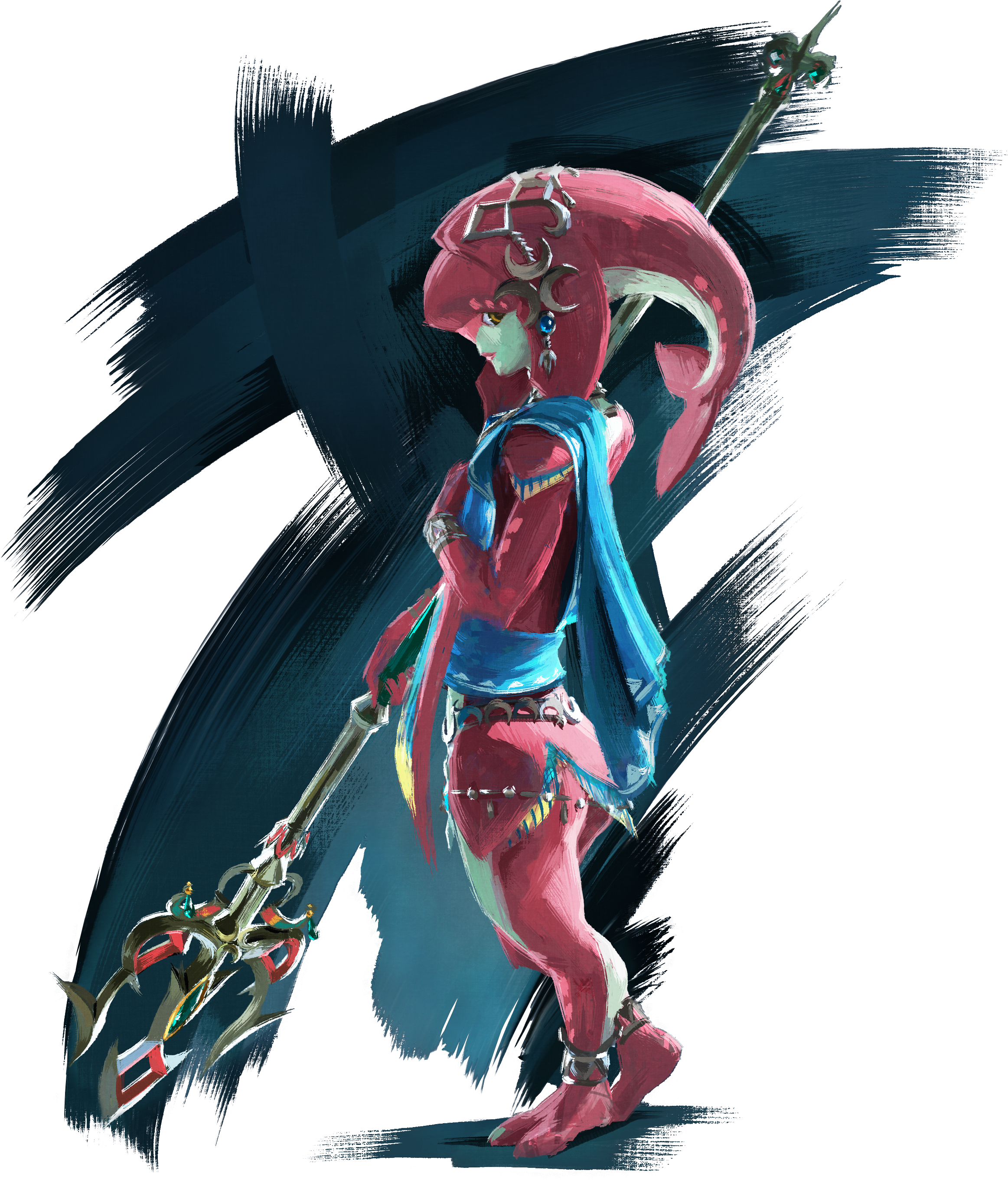 Mipha es la princesa de Zora. Es también una gran guerrera y una de las campeonas de Breath of the Wild. Además de la capacidad de curar a sus amigos y aliados, lleva como arma el legendario tridente de escamas.